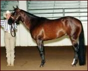 This 1994 bay roan stallion is the first colored son by AQHA World/Congress champion and champion producer Principle Investment and is out of a daughter of multiple medallion